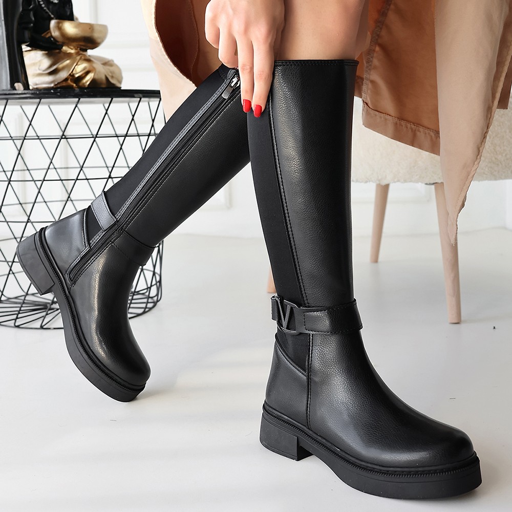 Detay: Topuklu Yandan Fermuarlı Diz Altı Çizme