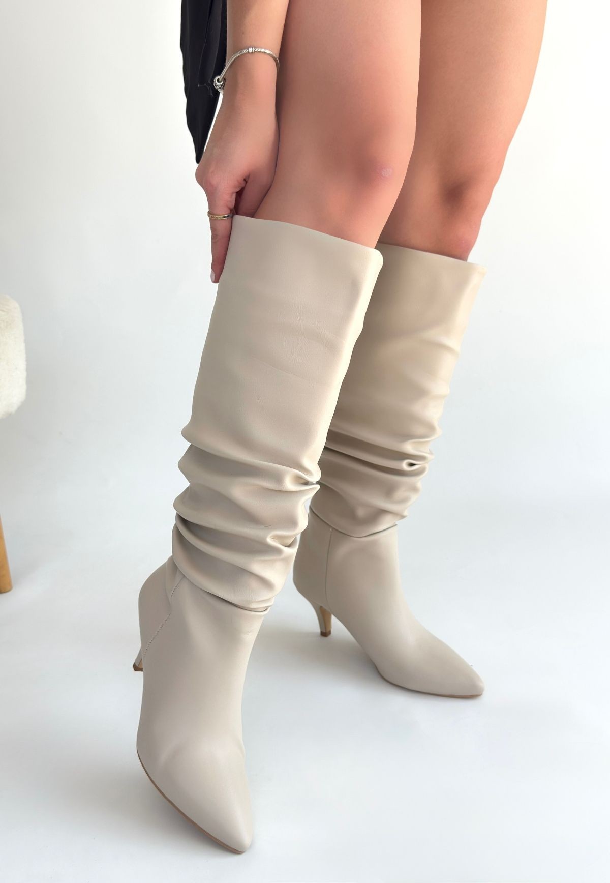 Detay : Topuklu Diz Altı Körüklü Çizme