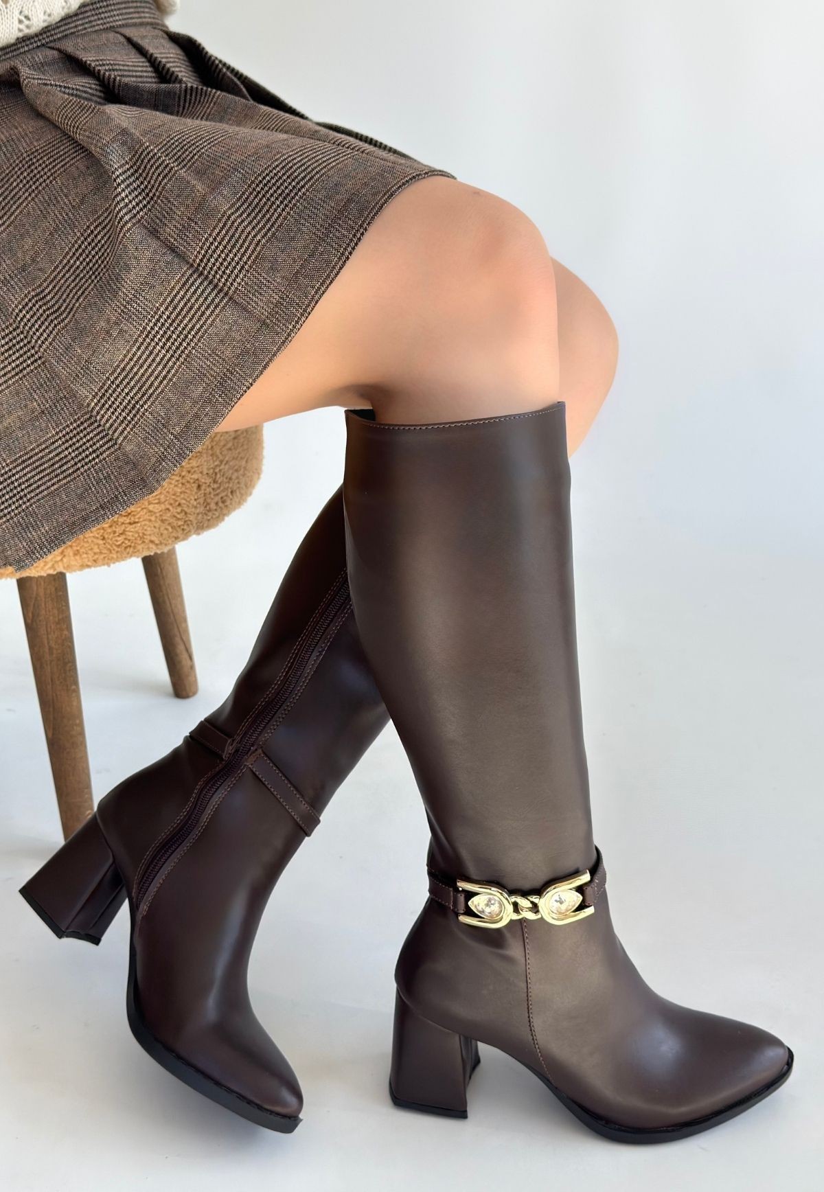 Detay : Topuklu Yandan Fermuarlı Diz Altı Çizme