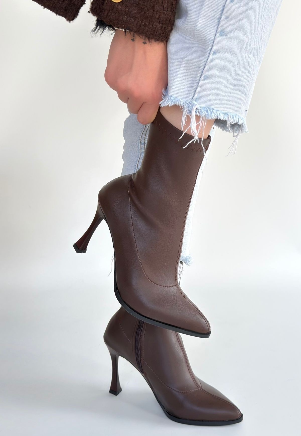 Detay: Topuklu Streç Yandann FermuarlıBot